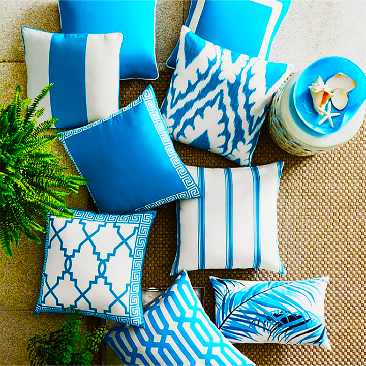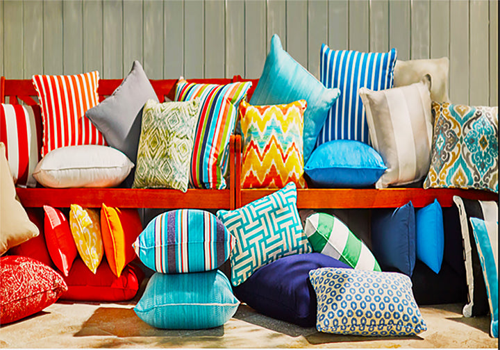 This collection is designed using a non woven UV fabric. The two fabrics are then sewn together using a sonic welder. This technique creates a bond melting the 2 pieces of fabric together. The End result is an insert that is entirely weatherproof.